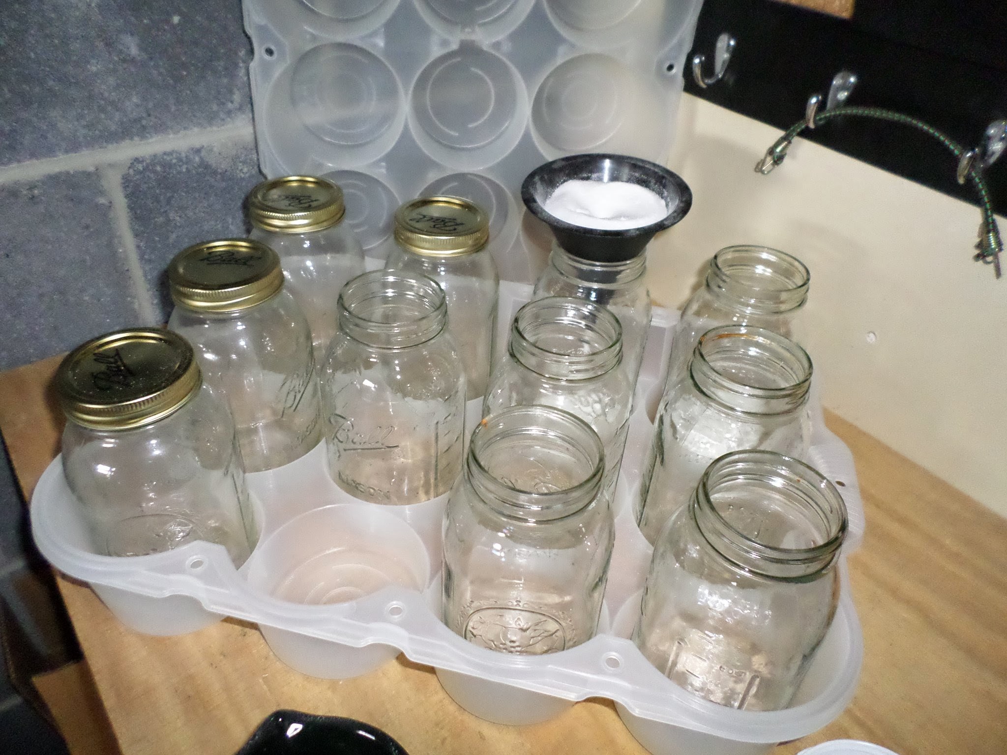 This tip is probably only useful for small-scale beekeepers like me who use entrance feeders instead of hive-top feeders. I make up several quart jars of pre-measured sugar but I don’t fill them with water until just before I need them. To keep ants and other unsavory characters out of my bee sugar I put all the jars, measuring cup, and funnel into one of these canning containers called The Jar Box. The lid snaps in place with little locks on either side.
