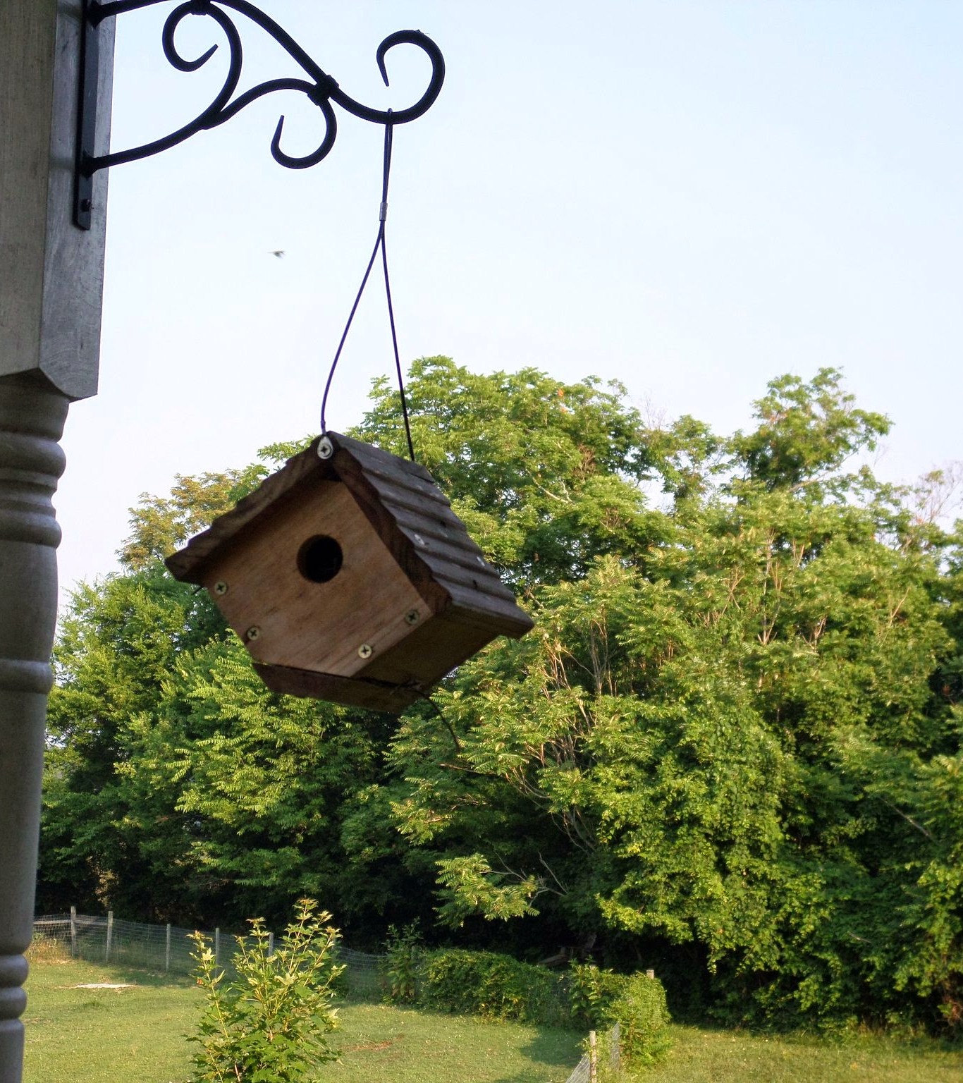 This little wren house was used last spring to raise one brood and has been used as a perch ever since. I love having wrens nest on the porch because I swear it keeps the wasp population down.